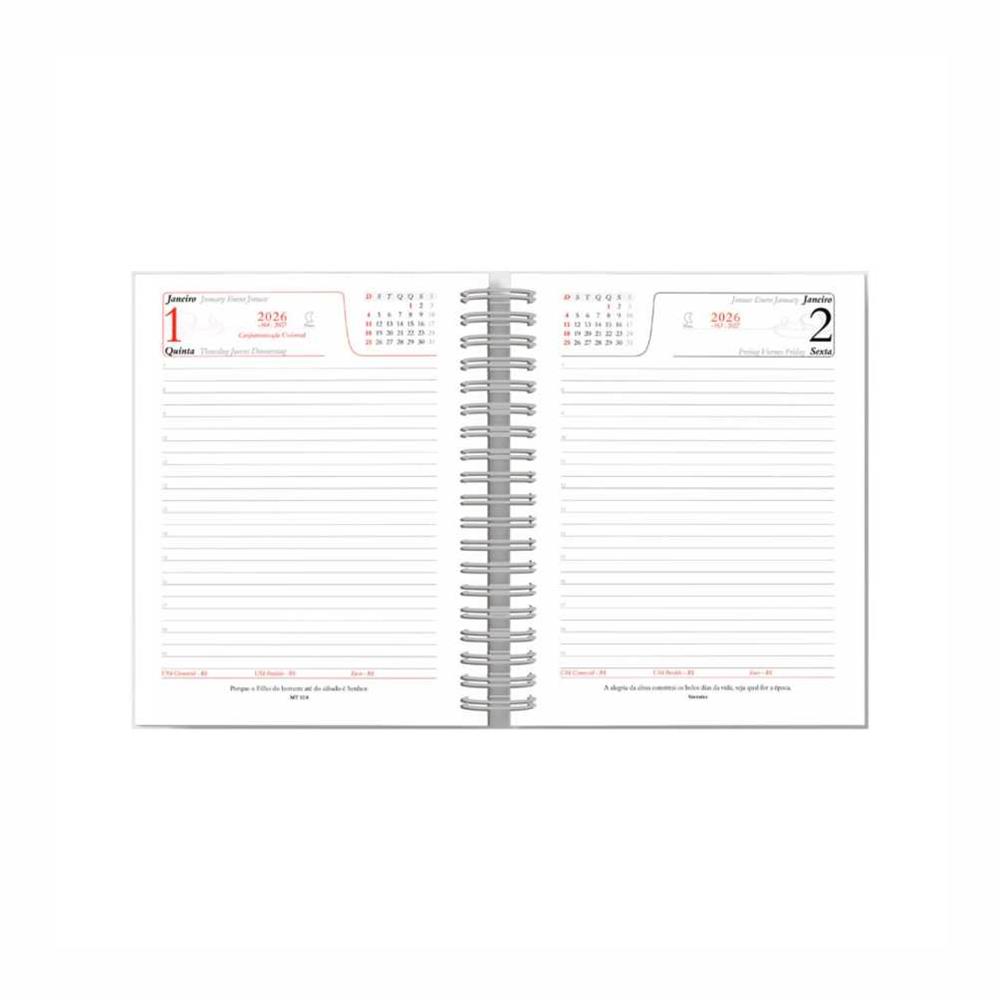 Nesse modelo de agenda o Miolo é padrão, mas é possível   adicionar paginas extras que personalizadas conforme necessidade.