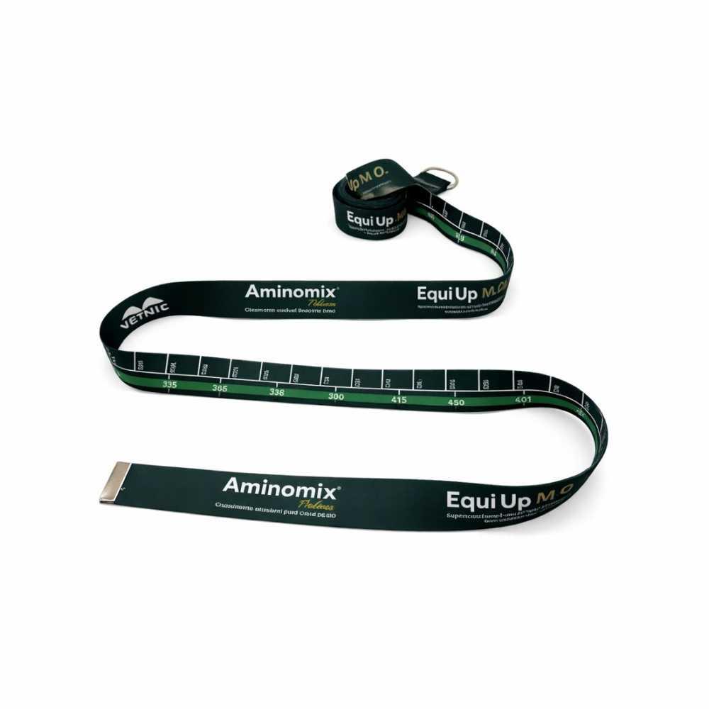 Fita Métrica de Pesagem Animal, em Poliester com meia argola em uma ponta e ponteira na outra ponta.