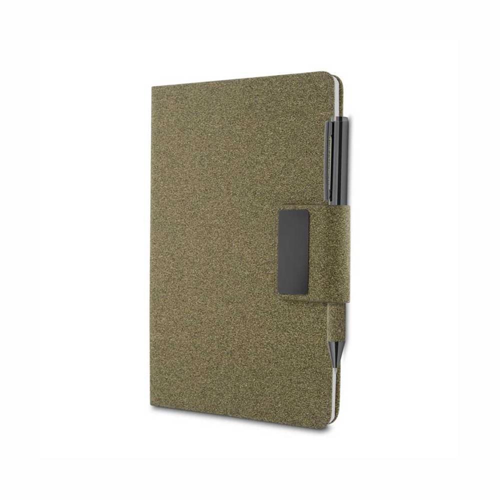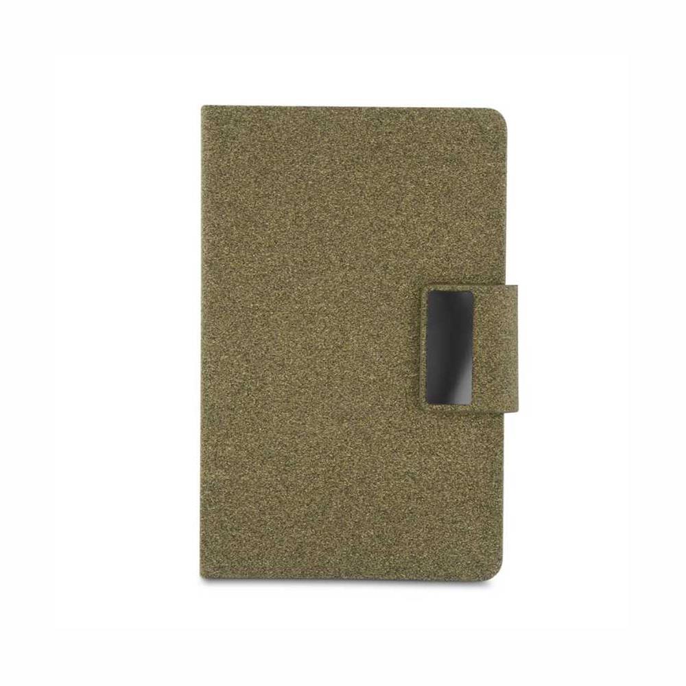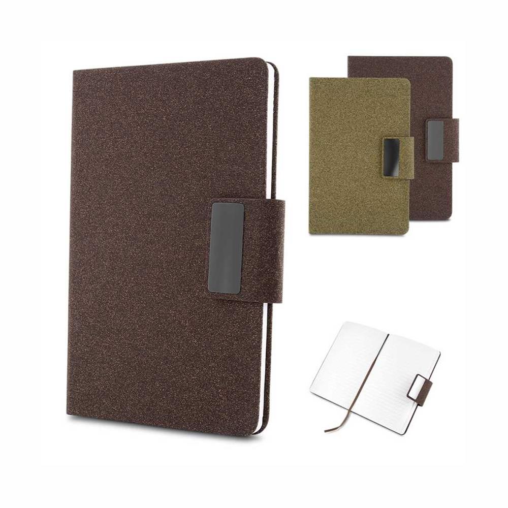 Caderno de anotações com capa em PU e fibra de chá ou café, 80 folhas 70 g/m², fechamento magnético com placa de metal.