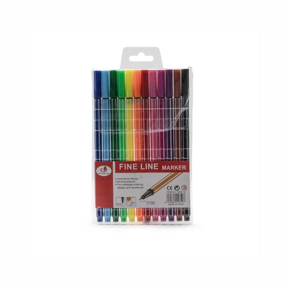 Kit canetinhas coloridas com traço fino, ponteira de 0.8mm. Contém 12 unidades.