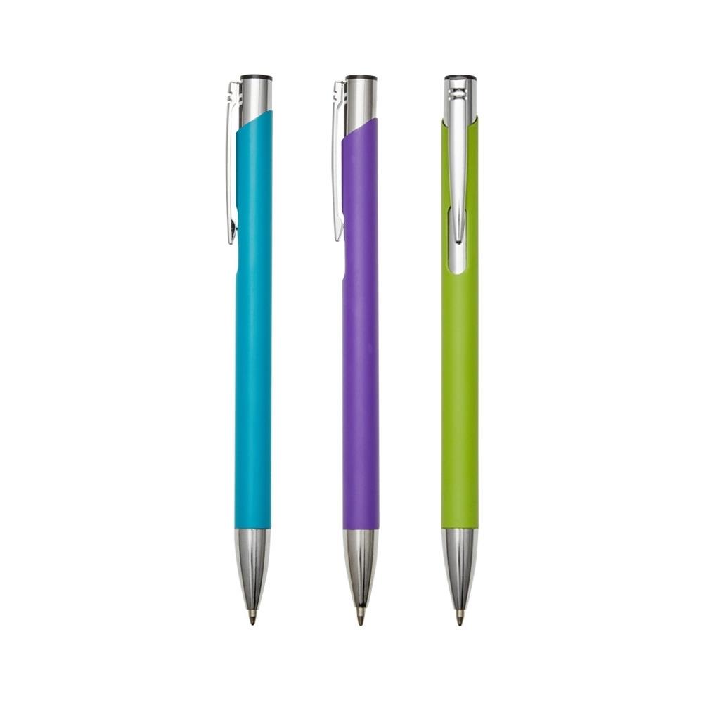 Caneta metálica com carga esferográfica azul 1.0mm e acionamento por clique.Largura : 1,3 cmComprimento : 14 cmPeso aproximado (g): 15
