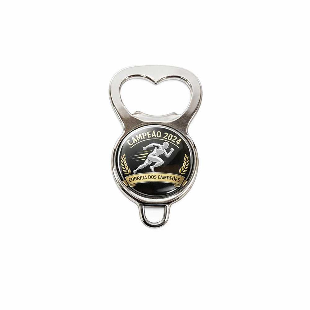 Chaveiro Abridor em Metal com argolaPersonalização: etiqueta resinada 01 ladoMaterial Zamac - banho níquel