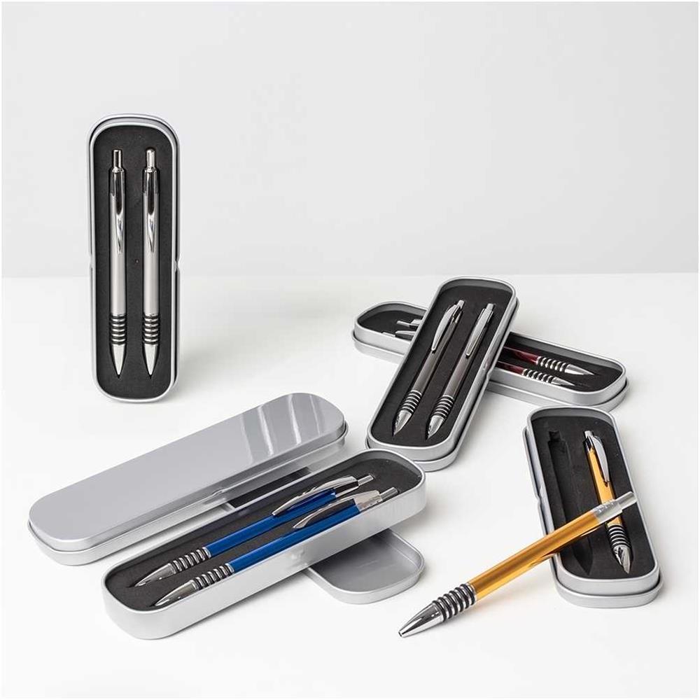 Com este conjunto de caneta e lapiseira metálicas, escrever será uma experiência ainda mais sofisticada e elegante. O estojo em metal que as acomoda, possui revestimento em espuma para evitar riscos. A caneta possui carga esferográfica azul de 1.0mm, com acionamento por clique, já a lapiseira possui grafite 0.7mm.