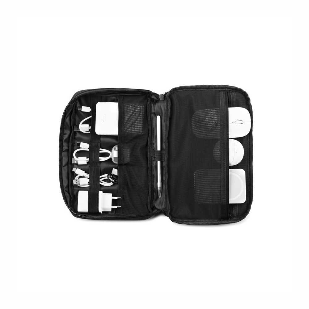 Estojo espaçoso para organizar acessórios tecnológicos. Composta em poliéster reciclado (rPET) 600D twill, com detalhes em PU e interior em poliéster reciclado (rPET) 210D.