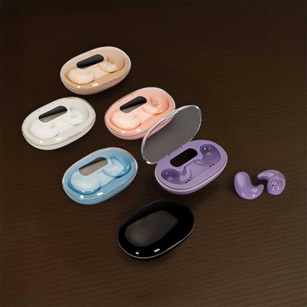 Fones de ouvido intra-auriculares sem fio, com estrutura leve e compacta em plástico e conexão via Bluetooth 5.3, garantindo estabilidade durante o uso. Possui estojo de carregamento com display de LED para visualizar o nível de carga. Acompanha cabo USB-C.