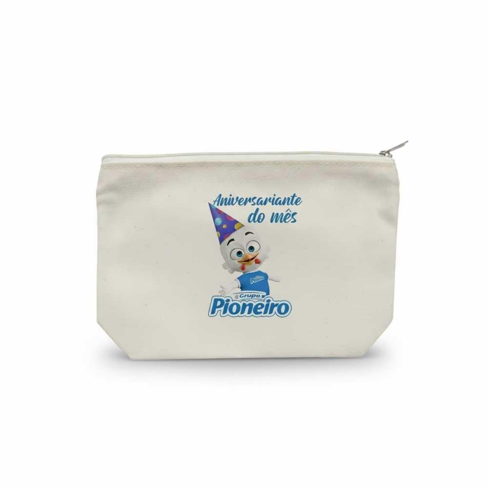 Necessaire em Algodão Cru, sem forro com ziper em tecido na parte superior.