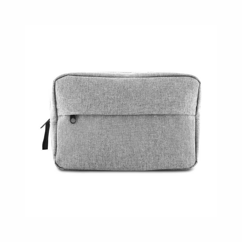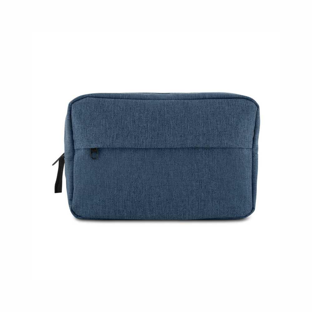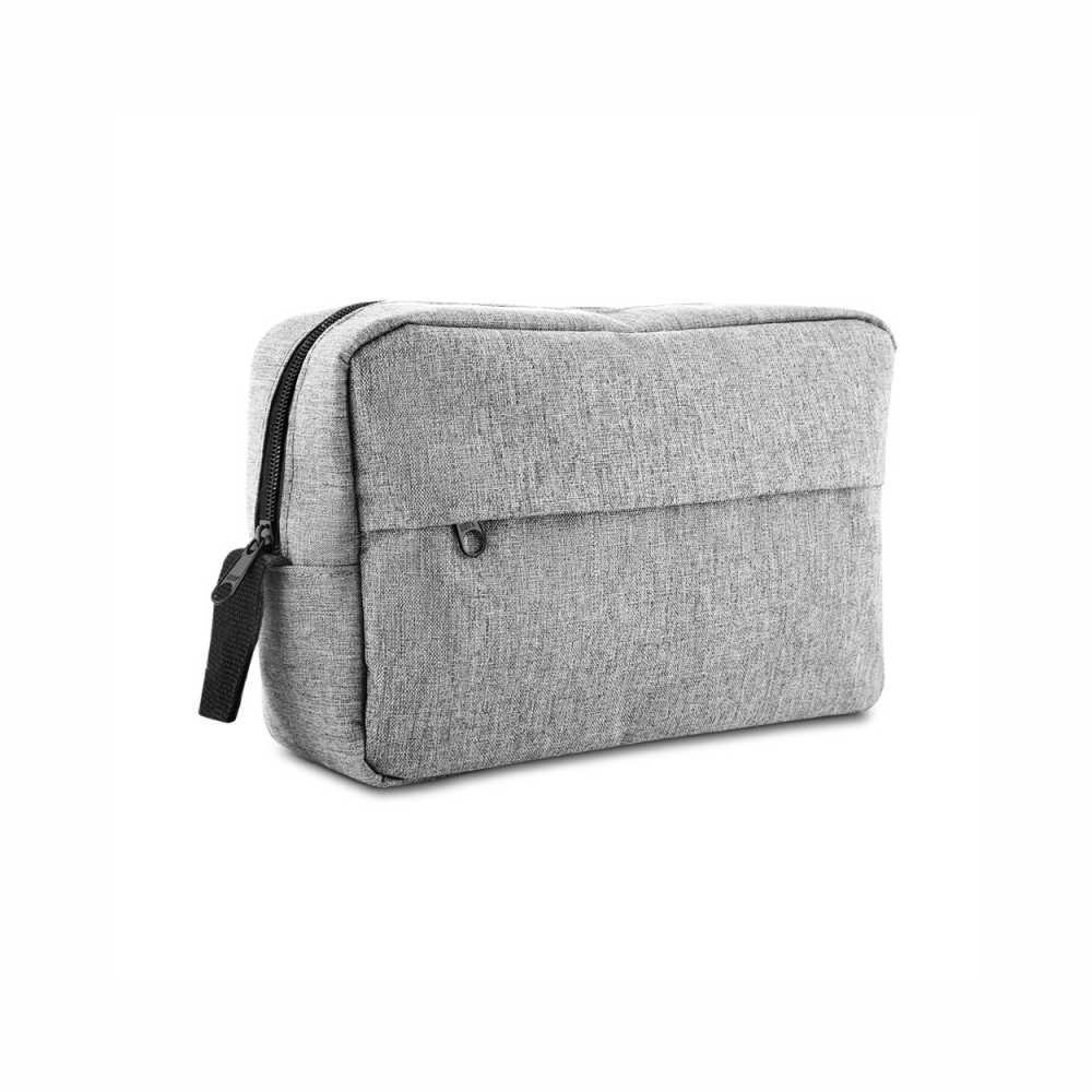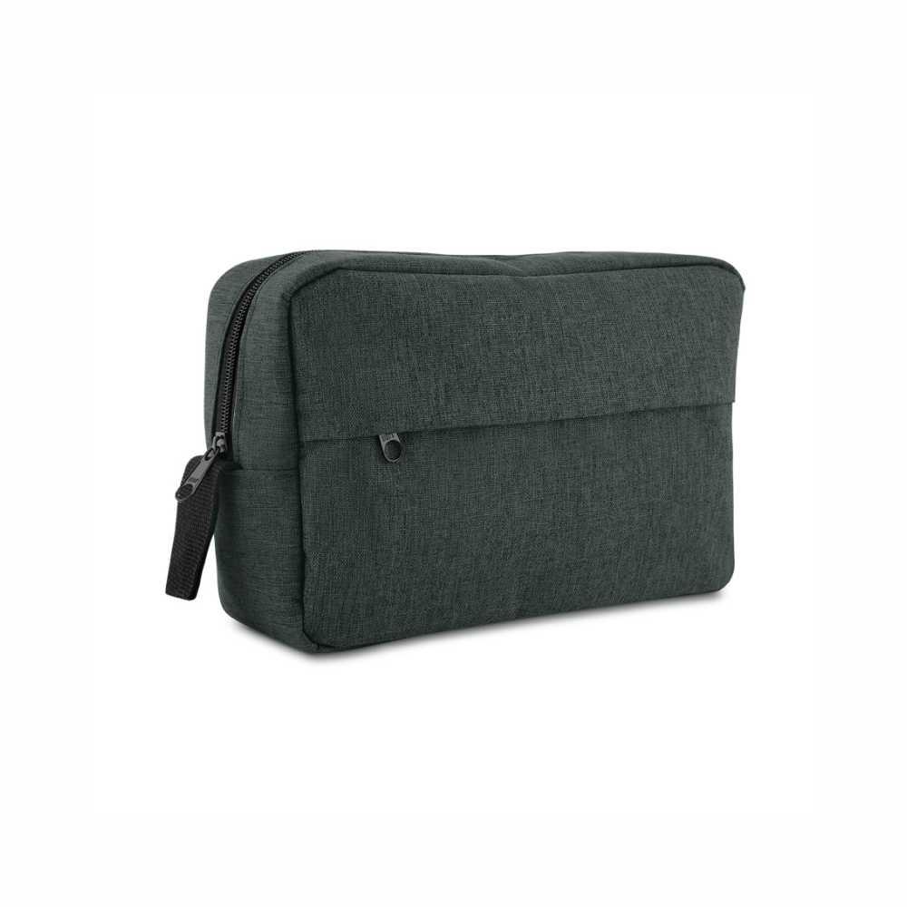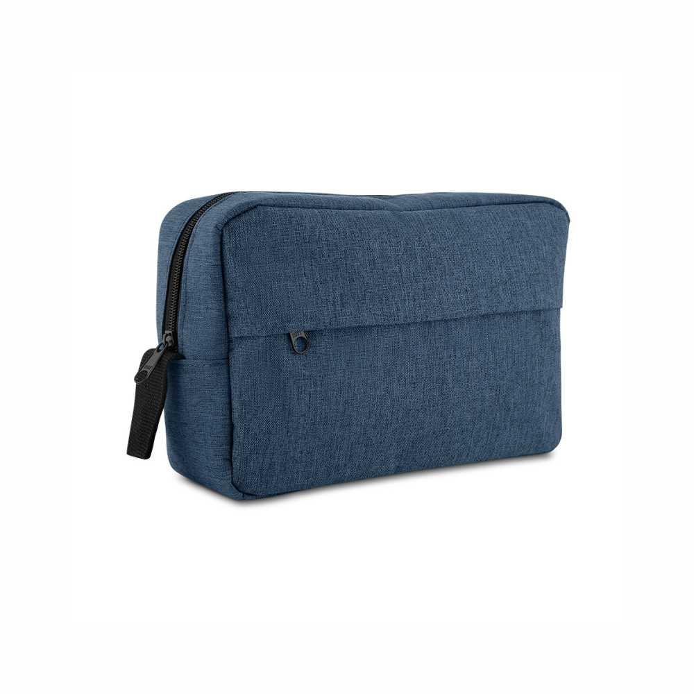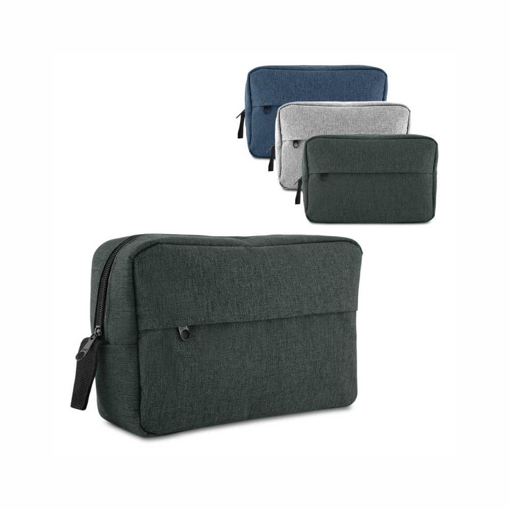 Nécessaire em poliéster 300D com alça, compartimento frontal com zíper.