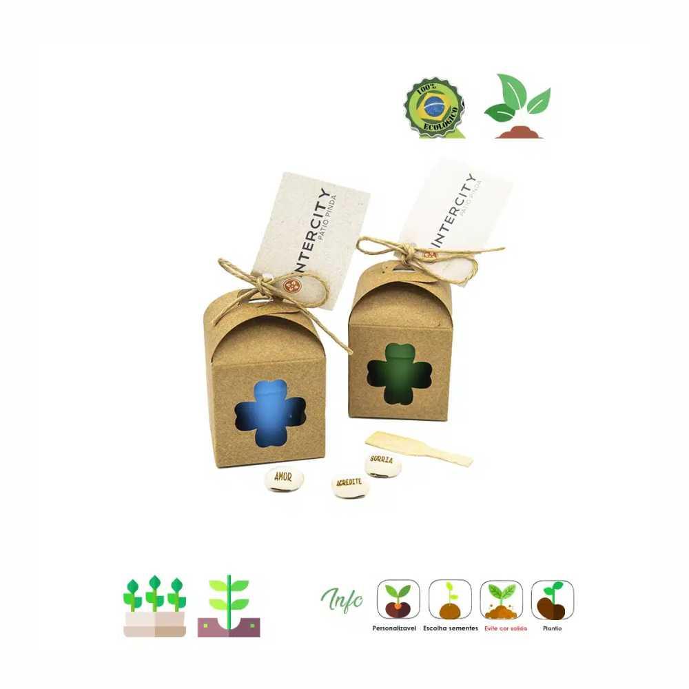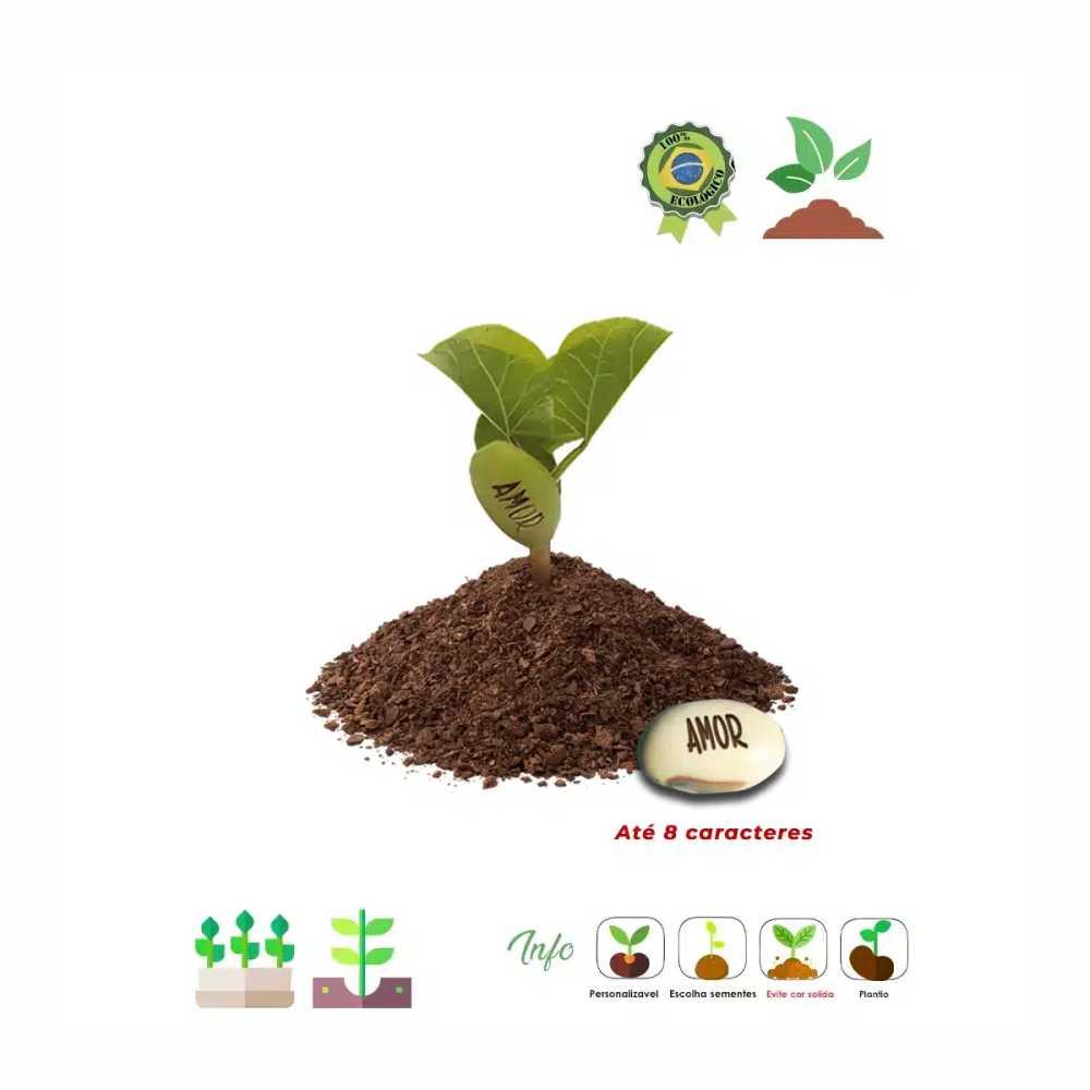 Mini Vasinho Plástico, semente mágica que pode ser gravada com uma palavra de sua escolha, substrato de alta qualidade e pazinha para facilitar o plantio e os cuidados.