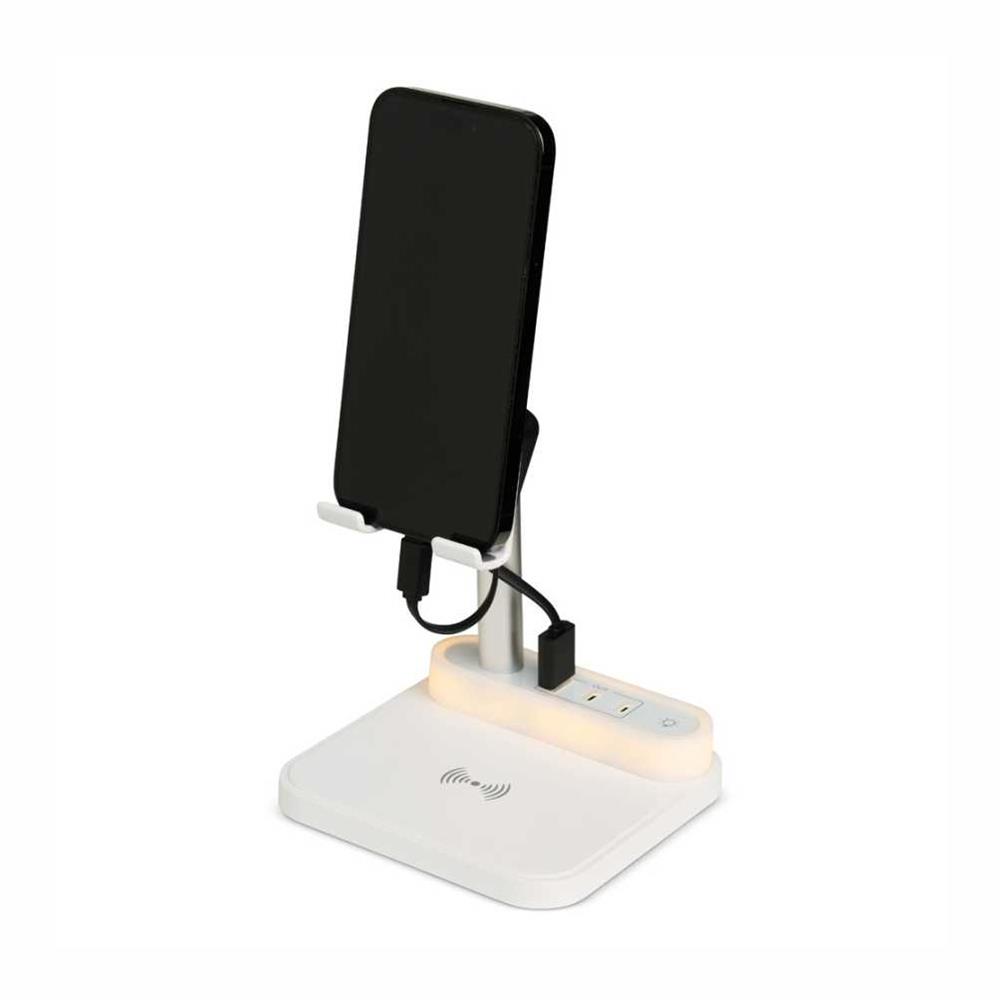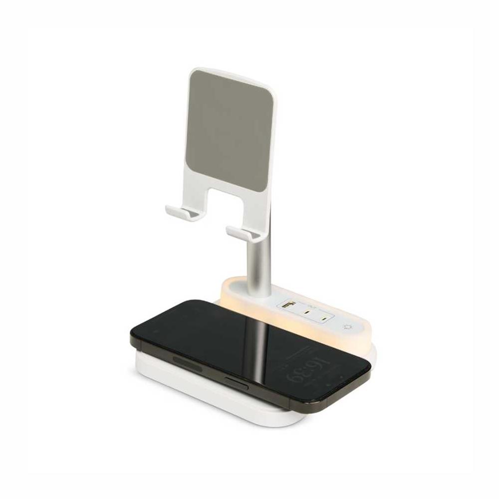Com opções de carregamento via indução ou via cabo, nossa base é prática e funcional. Produzida em plástico com apoios antideslizantes, a base possui duas entradas Tipo-C, uma entrada USB e uma saída Tipo-C. Acompanha um cabo USB Tipo-C.